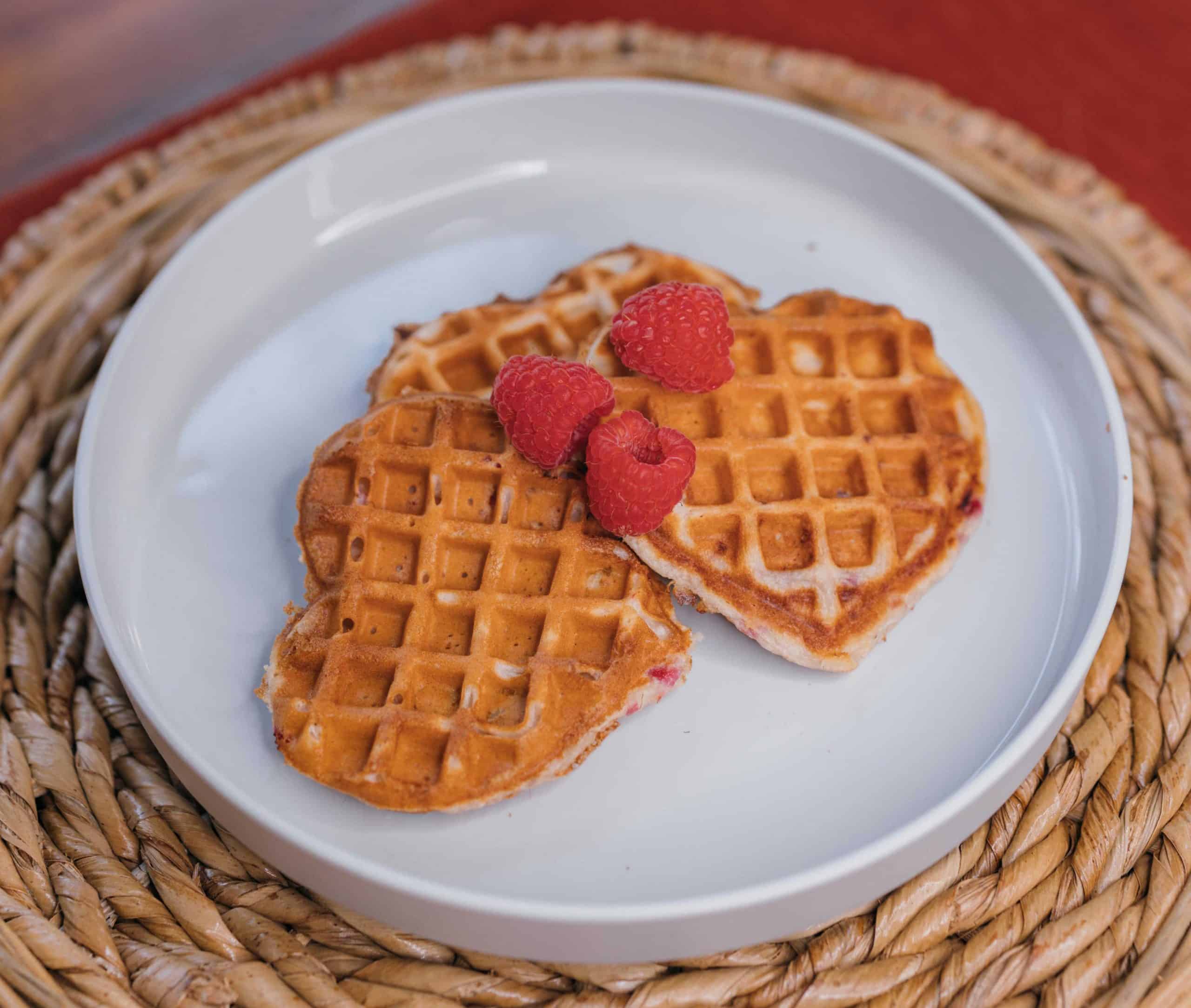 My 21 months old made these Greek Yogurt waffles over the weekend with little help from me (of course!); it’s that easy to make, and a great way to add some protein, calcium, and probiotics to your breakfast. I used a heart waffle maker to make these adorable heart waffles for Valentine’s day.