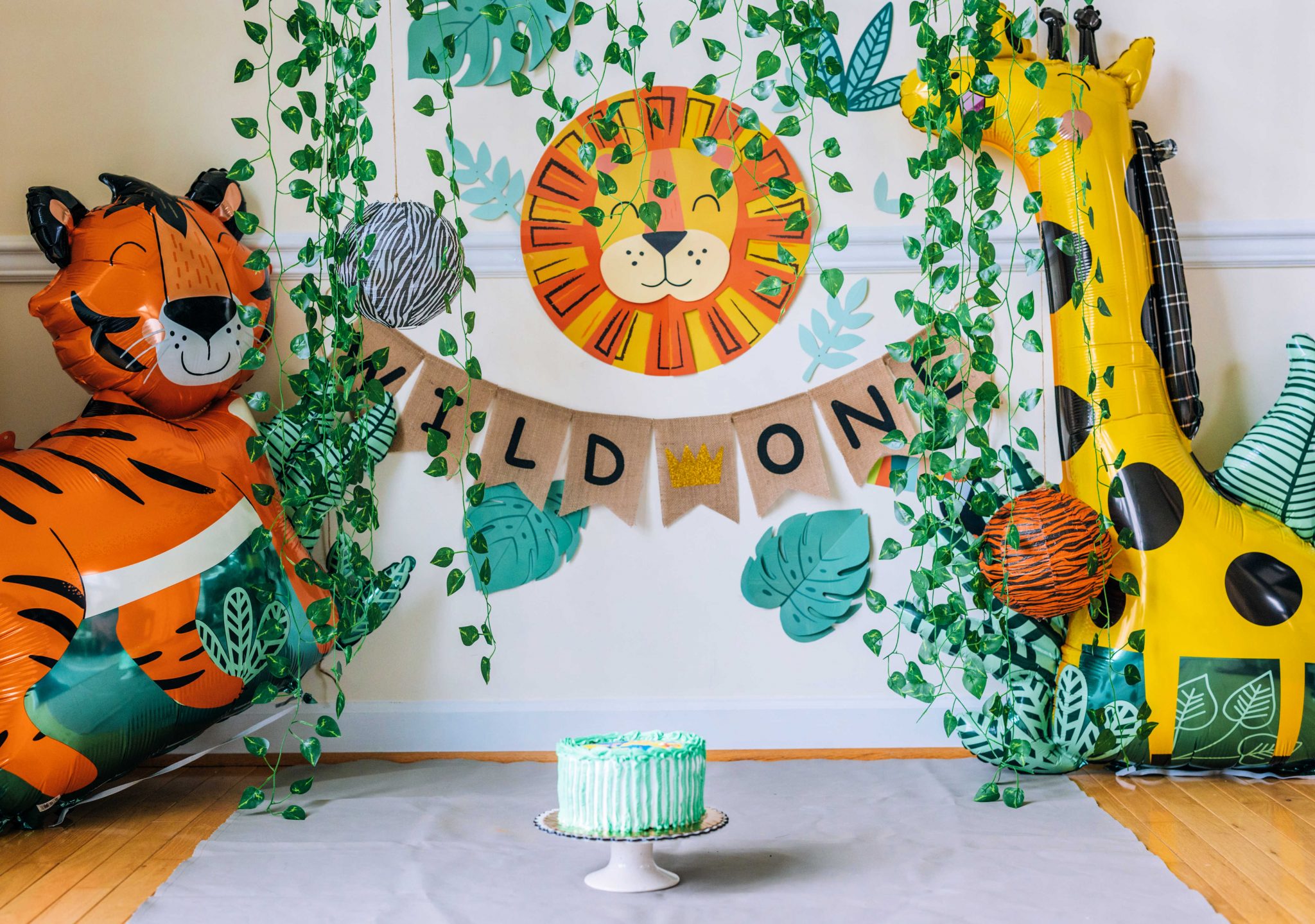 After a bit of searching online and looking at several jungle-themed cake smash pictures on Pinterest. I got an idea of what I wanted to do and how to make the backdrop stand out without a balloon arc and add my unique touch.