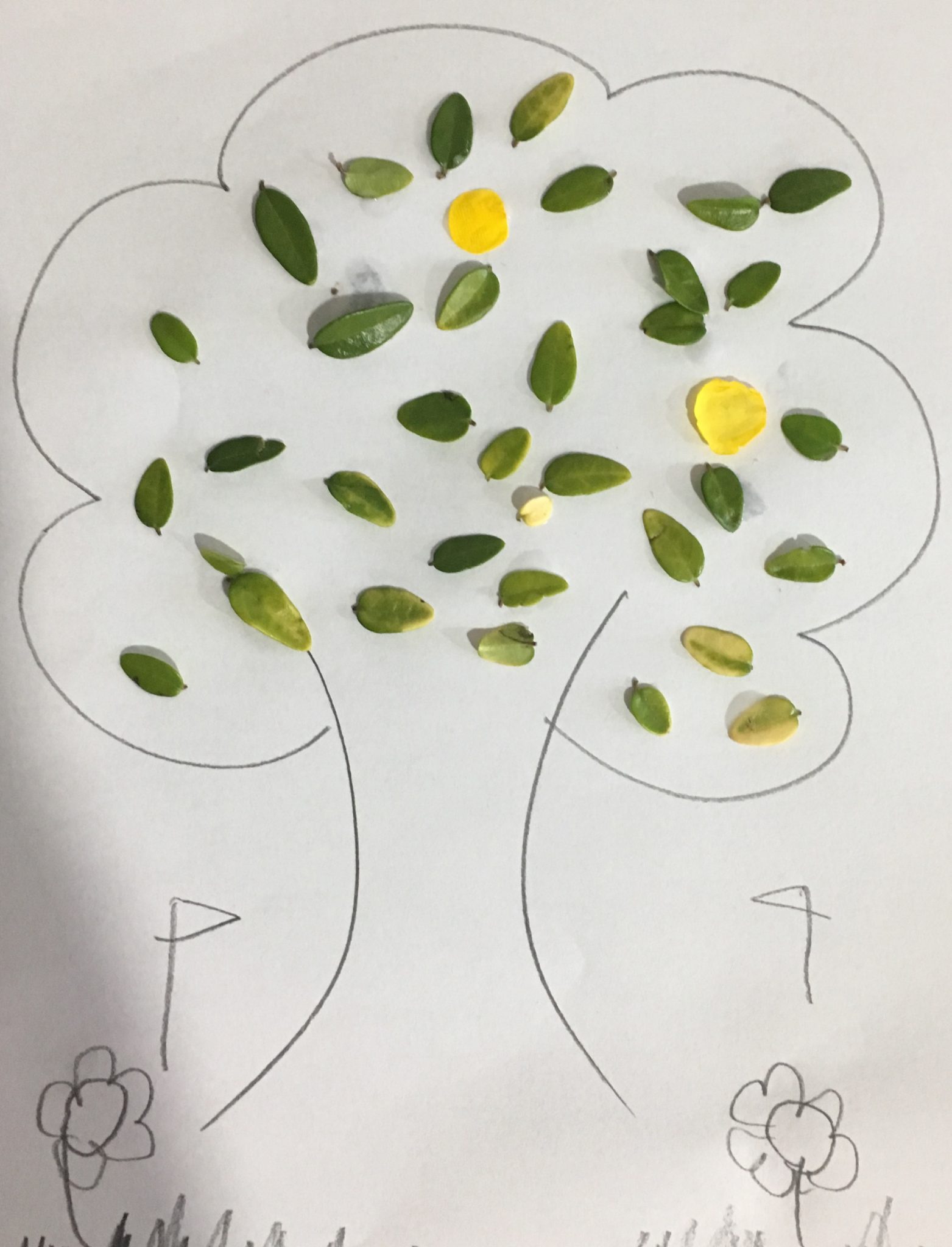 - Ask your little one to stick the leaves on the tree using the same bud or back of the brush.