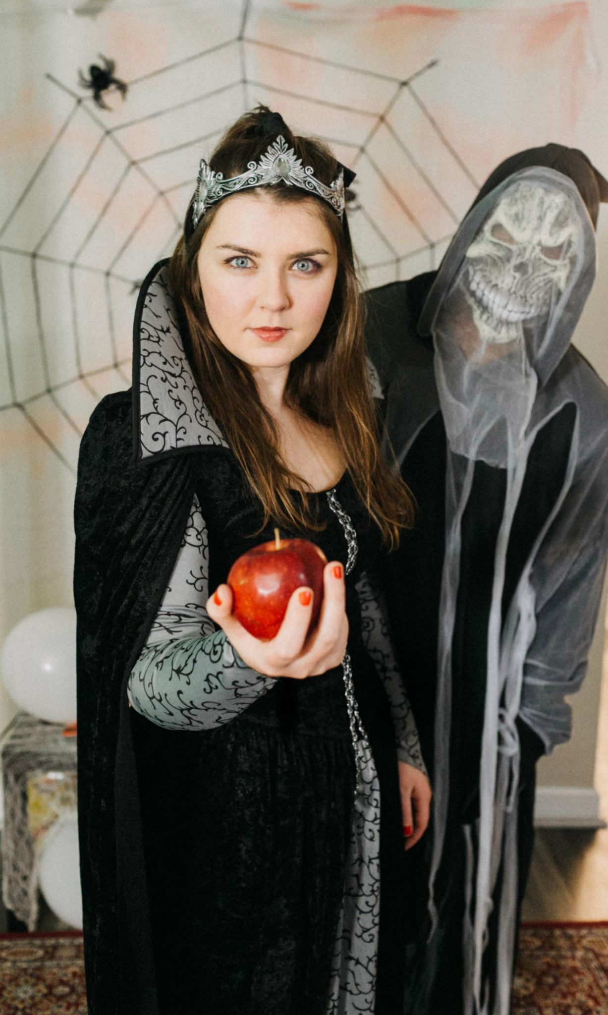 Chelsea and KJ dressed up as Evil Queen and grim reaper