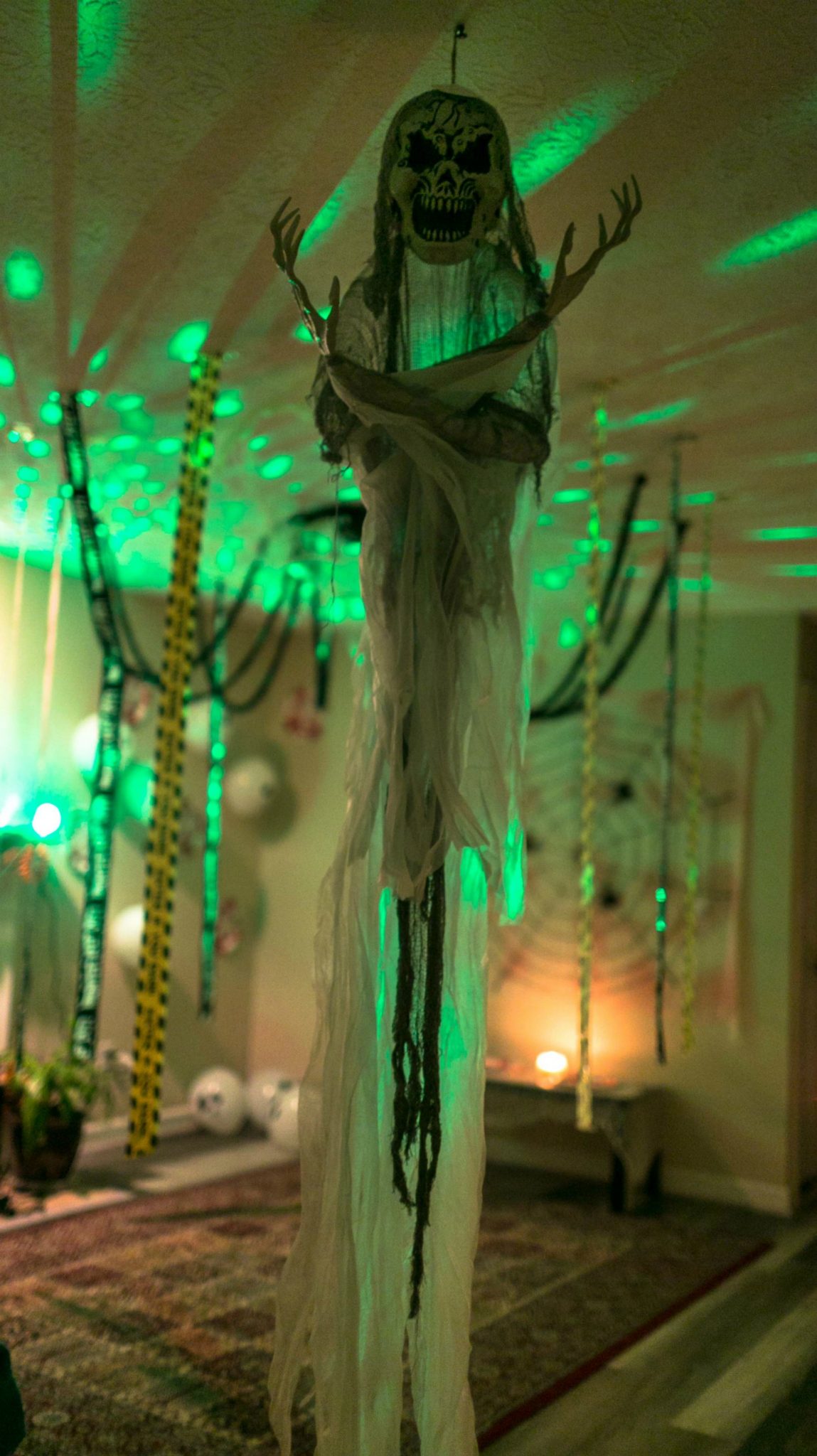 We hung this gigantic skull at the entrance. As soon as someone enters the house, it’s the first spooky thing they will notice and hopefully get scared.