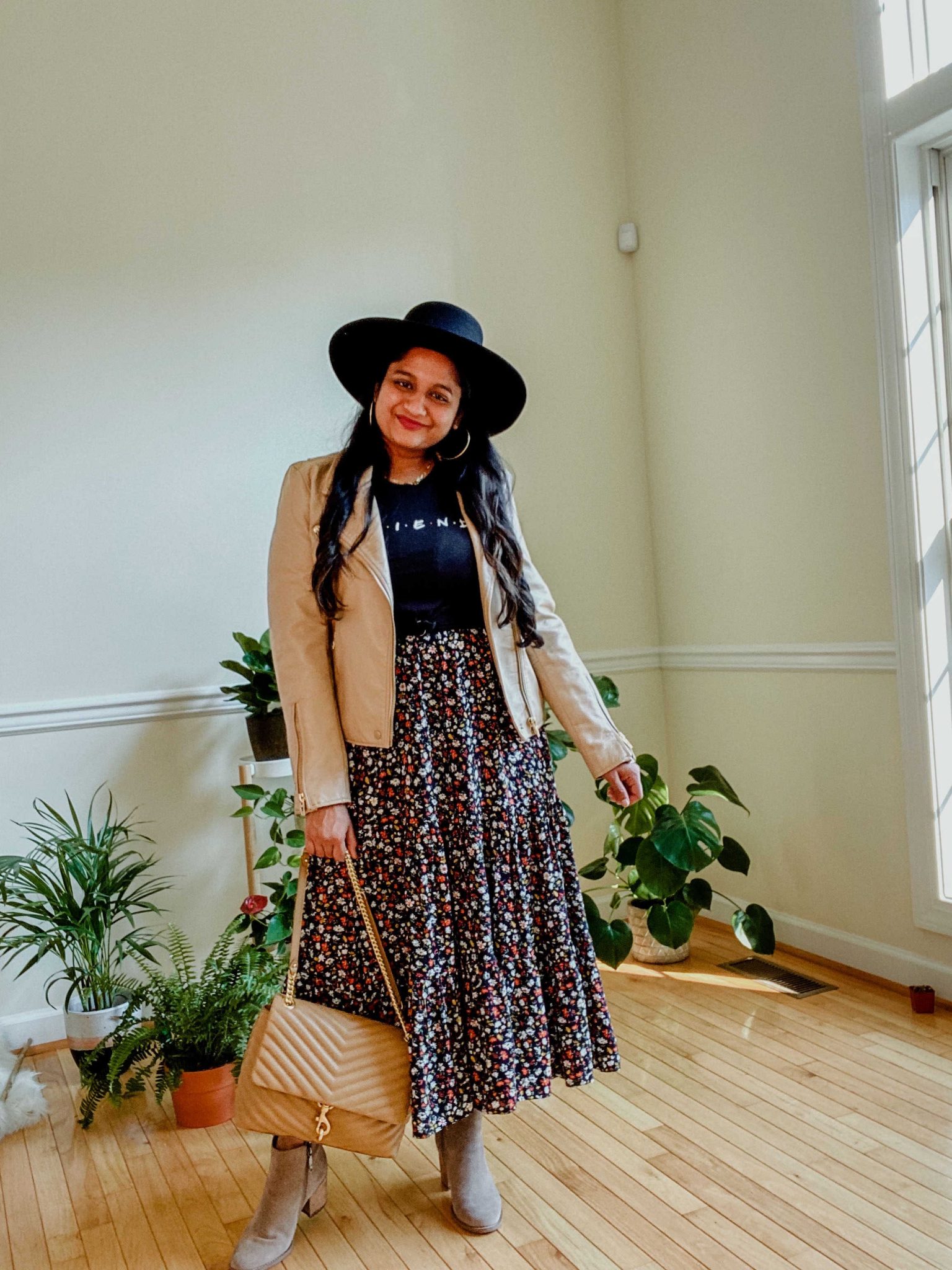 I’ve taken a floral sleeveless midi dress and layered it in 7 ways for Fall& Winter.