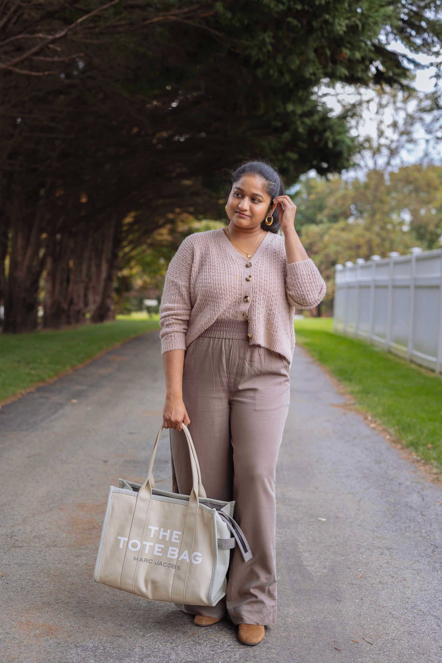 It’s not every day that you will find a vertical striped dress with a button-down option! Vertical stripes elongate your figure by drawing the eye up and down, making you look taller. You can style this dress as a duster or jacket. More outfits coming soon in this dress! I styled it with a statement belt to elevate the look and the comfiest heels. The canvas tote is so versatile you can use it as a work tote or travel tote, or even as a diaper bag. It’s stylish and also practical.