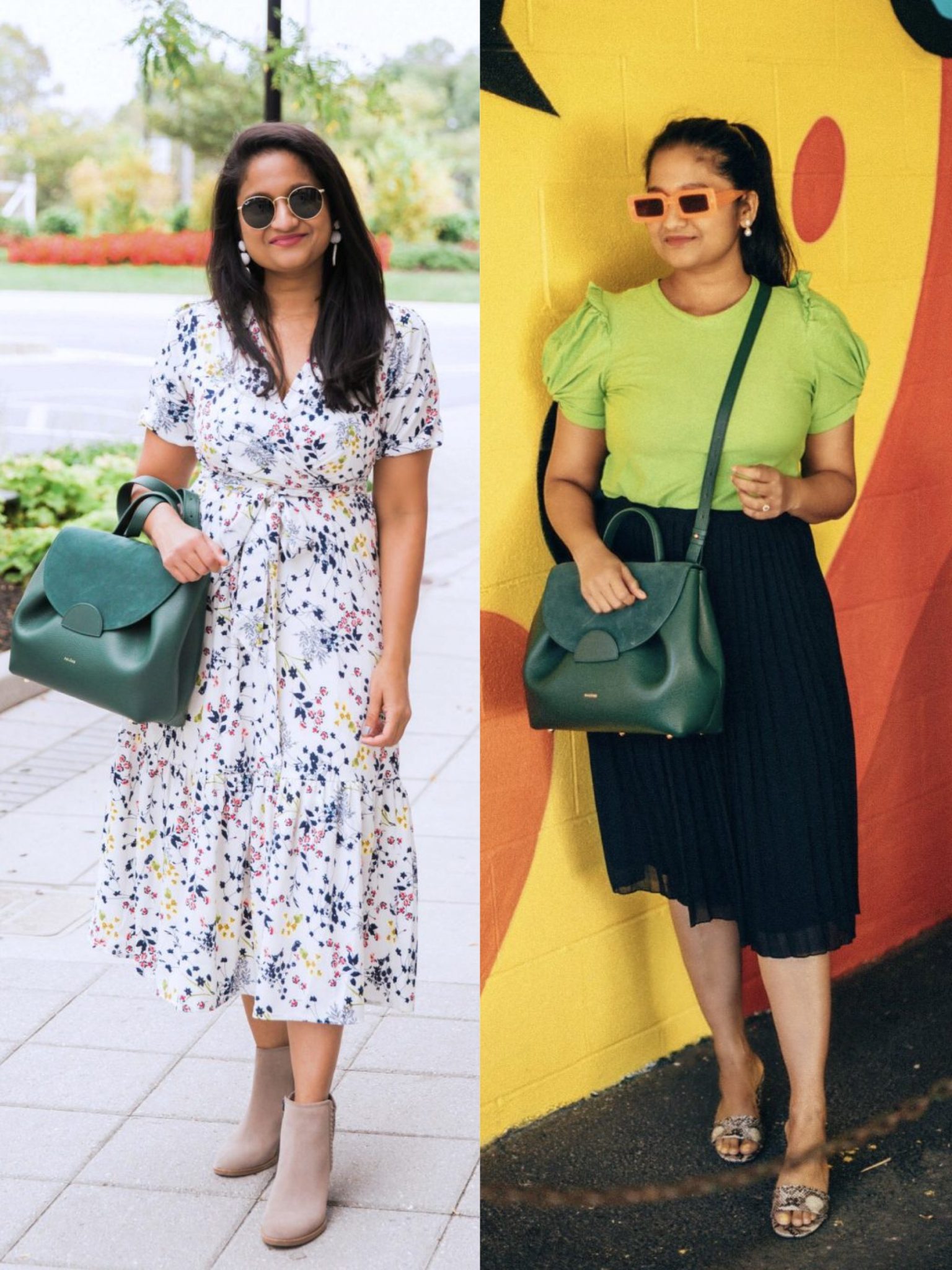 Another amazing bag from Polene, I LOVE the green color. This bag looks very high end like a Celine bag with a quarter the price. The size and shape work great for everyday use. The shoulder strap is detachable and has a lot of room to store all my essentials + extras. The bag also comes in mini sizes.