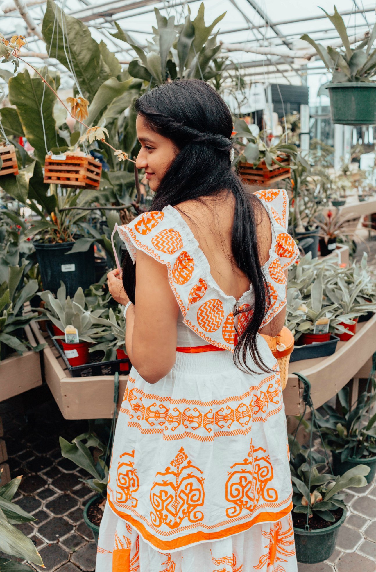 I love the top. It comes with a long V-neckline both in the front and back with ruffled trim and a zipper at the back. It was too deep for me in the front so I wore a white bralette underneath. The matching bottom is a tiered ruffle skirt and comes with a smocked tie waistband. I love skirts with thick waistbands, they give a flattering hourglass look.