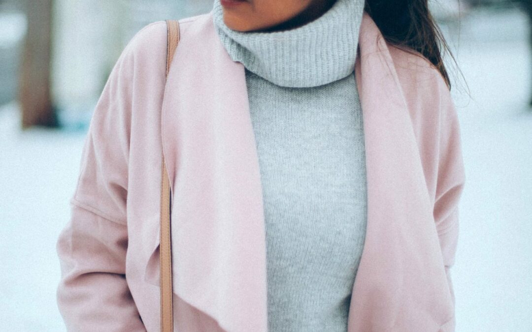 Winter Neutral Outfit with white jeans, grey sweater and pink wrap coat Something is hard to understand! hmm! then you...