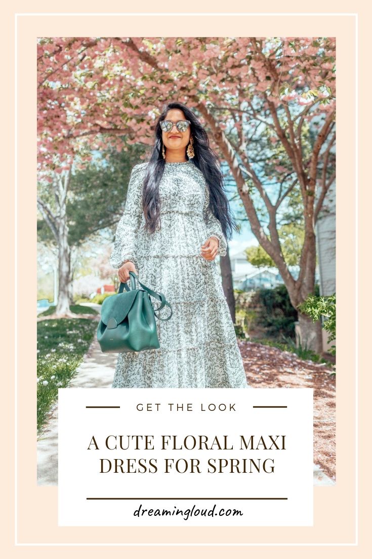 Let’s talk about this floral maxi dress look: this is seriously the most whimsical dress I’ve known. It has a very feminine fit and the cute ruffles make the dress flowy and bohemian. This floral maxi dress is completely lined without feeling heavy thus making it very spring/summer appropriate. I am wearing a size S, and it’s true to size. The best part is you can actually customize the length of the dress, you can either choose knee/maxi length.
