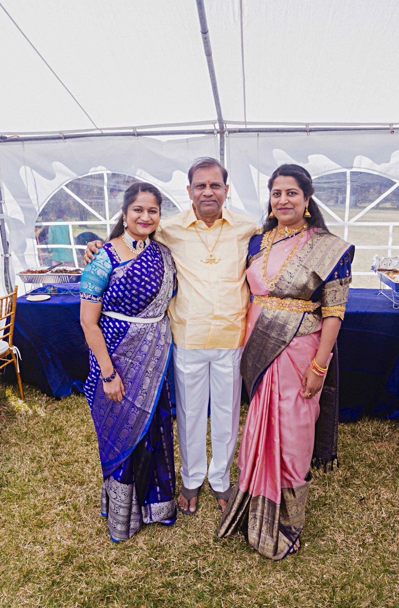 I picked blue and white by keeping my husband’s limited color choice in mind. My Saree, blouse stitching, Rajesh’s, and Vihaan’s outfits everything was done by Vividha boutique.
